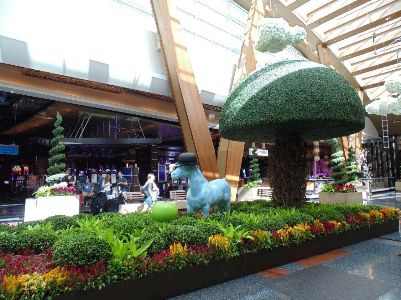 The ARIA’s Horticultural Division finished the Garden with hundreds of live plants and flowers at the base of the Topiary.