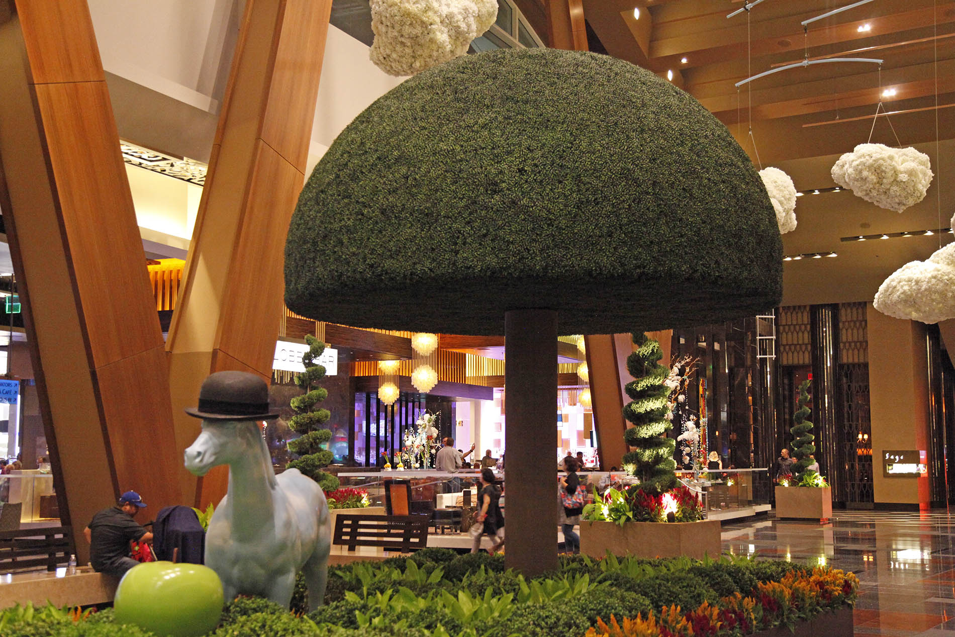 Aria Resort & Casino is the flagship Luxury Resort and Casino of MGM’s multi-billion dollar City Center on the Las Vegas Strip. They created a freestanding Fantasy Garden in its main lobby, which included a huge 18’ tall Permanent Boxwood Topiary as the focal point.
