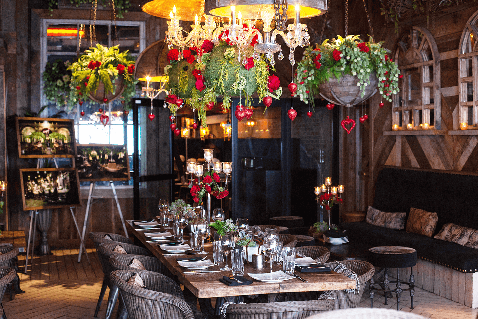 The Vanderpump Cocktail Garden flowers, foliage, and trees were provided by Plantworks. This includes the “incredibly life-like hand-carved” replica olive trees, decadent faux English roses, and industrial design wall greenery.