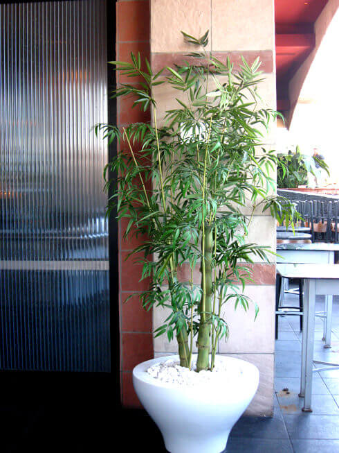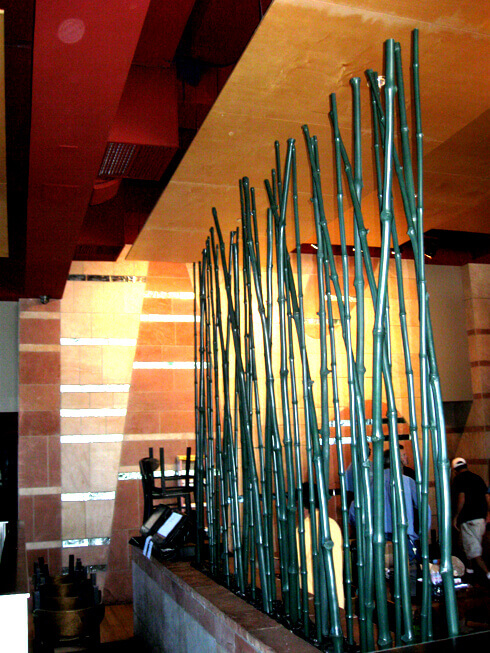 Sapporo Restaurant in Arizona did a full interior remodel with custom design, specialty renovation, and building. Our team was challenged with creating a Bamboo screen that would be installed in two existing planters, totaling over 40 linear feet. We made and installed our Natural Green Bamboo Cane to use as space partitions. We also used potted clumps of the same bamboo as decorative accent plants.