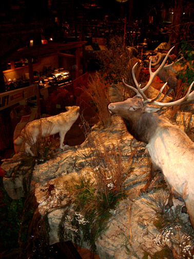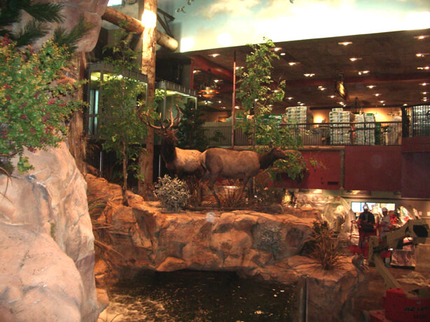 Our artisans have created many natural habitat in-store displays for Bass Pro Shops, which all feature our museum-quality Replica Trees and Replica Plants. This began with Landmark Bass Pro Shop in the Silverton Casino Hotel Las Vegas in 2004. Our team provided replica natural habitat displays throughout the organization.