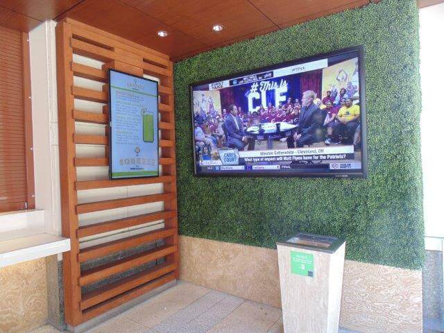 Constructed on varying-sized panels, this artificial Green Wall accommodated cut-outs that framed serving stations, televisions, and fruit-themed artwork, resulting in a seamless and extremely attractive backdrop.